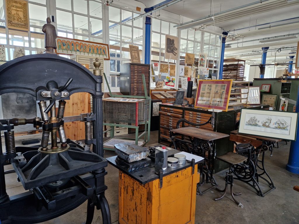 Epinal ist für die Fabrikation von Lithografien und Baccarat für seine Kristallmanufaktur weltberühmt, Beides konnten wir bestaunen. In der Imagerie d’Epinal, die bereits 1796 von Jean-Jacques Pellerin gegründet wurde und eine Buchdruckpresse Gutenbergs ihr eigen nennt, werden auch heute noch Bilddrucke mit unterschiedlichen Drucktechniken gefertigt. Deshalb konnte man die Herstellung eines Druckes an alten Maschinen live erleben. In jedem Jahr kommen weltberühmte Künstler, um einen Druck in der Werkstatt herzustellen, den man käuflich dann erwerben kann. Das benachbarte Musée de l’Image beherbergt eine bedeutende Sammlung von über 110.000 Objekten, darunter auch lithografierte Bilderbögen, von der Imagerie Pellerin, der letzten erhaltenen Bilderfabrik Europas.