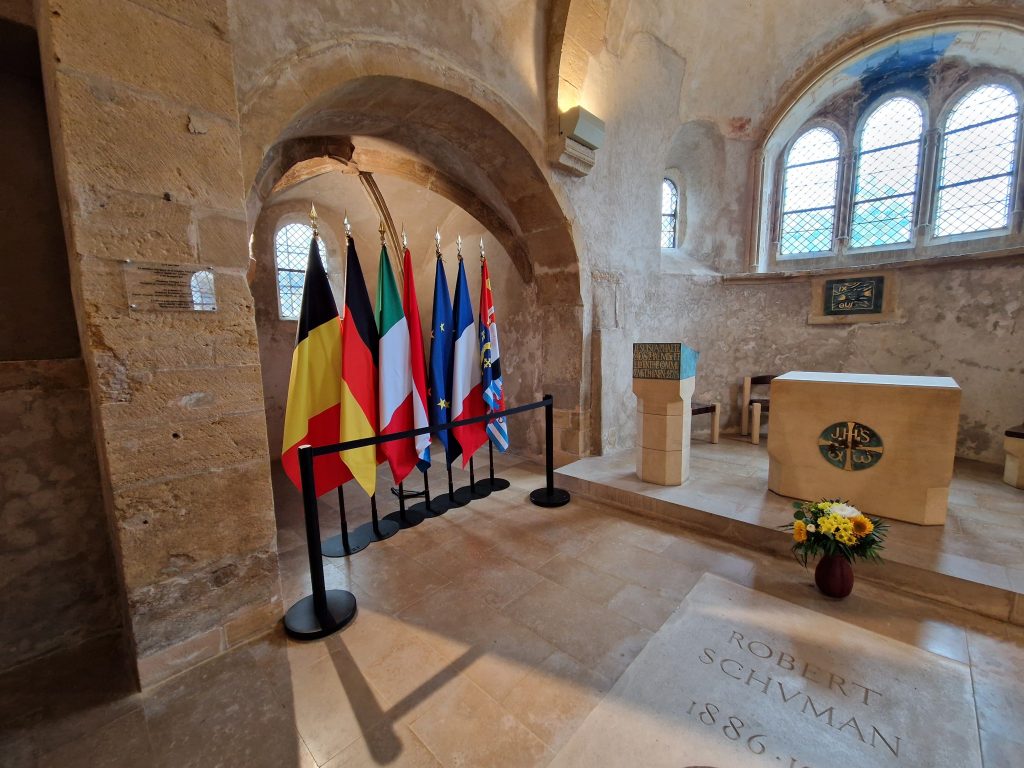 Der letzte Tag der Reise war Europa gewidmet. Es ging nach Scy-Chazelles zum Robert-Schuman-Haus. Das Geburtshaus entpuppte sich als lebendiges Museum. Der Staatsmann entwickelte in diesem Haus seinen kühnen und visionären Plan von der Montanunion, der den Frieden in Europa dauerhaft sichern sollte. Dieser Plan, mit der Schreibmaschine geschrieben und mit handschriftlichen Vermerken versehen, ist heute auf seinem Schreibtisch zu sehen. Er wurde am 9. Mai 1950 – also vor 75 Jahren – im französischen Parlament vorgestellt. Schuman schlug vor, die Produktion von Kohle und Stahl, Rohstoffe für die Rüstungsindustrie, unter eine gemeinsame Kontrolle zu stellen. Seitdem gilt dieses Datum als Geburtsstunde der Europäischen Union und wird jedes Jahr als „Europatag“ gefeiert. Die zur damaligen Zeit revolutionär-visionäre Rede kann unter folgendem Link angehört werden: #EUArchives – Founding fathers of the European Union: Robert Schuman (Auch hier gilt, dass das Anklicken dieses Links auf Ihre eigene Verantwortung geschieht. Für die Informationen und/oder eventuelle Schäden, die durch das Aufrufen der Seite entstehen, übernehmen wir weder Gewähr noch Haftung.) Nach einer Fahrt durch Luxemburg und die Eifel und einem Imbiss im Forstwalder Hof ging es dann Richtung Heimat.